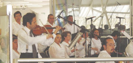 sobre la planta superior de la USBI y al frente de una masa orquestal