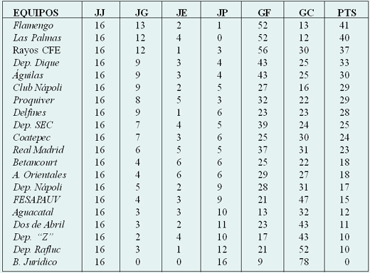 A. Castro (Rayos CFE) 24; Juvencio Chimal (Águilas