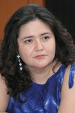 La presencia de esta mujer es fuerte, se advierte en ella un carácter