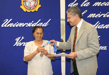su madre recibió del Rector de la UV la Medalla que lo reconoce