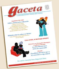 Dedicado a la Feria Internacional del Libro Universitario (FILU) 2005, el más reciente número de la Gaceta de la Universidad Veracruzana (UV) contiene entrevistas y conferencias de José Woldenberg, Boaventura De Sousa Santos, Gilberto Guevara Niebla, Fernando Savater –hablando sobre la democracia–, Carlos Monsiváis, Rosana Reguillo, Porfirio Muñoz Ledo, Raúl Trejo Delarbre, Francisco Gil Villegas, José Manuel Valenzuela, Víctor Roura, Teresa González Luna, Esteban Krotz, Salvador Martínez Licón, Felipe Hevia, Ernesto Isunza, Alberto Olvera, entre muchos otros destacados intelectuales y académicos.