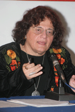 Julieta Haidar durante su conferencia en la Facultad de Antropología