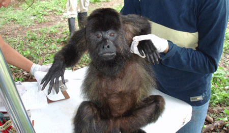 a 26 monos aulladores localizados en las zonas de riesgo, específicamente