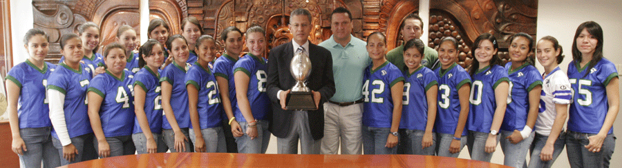Acompañadas por el head coach, José Luis Izquierdo Bustamante, y su asistente Edgar Sastré, las campeonas visitaron al Rector para entregarle el trofeo que las acredita como monarcas de la temporada 2006, luego de su triunfo, con pizarra de 60-26, sobre las Águilas Blancas del Instituto Politécnico Nacional.