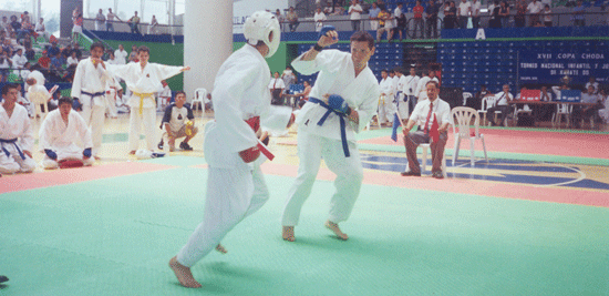 de kata (forma) y combate en el reglamento; a las 13 horas receso