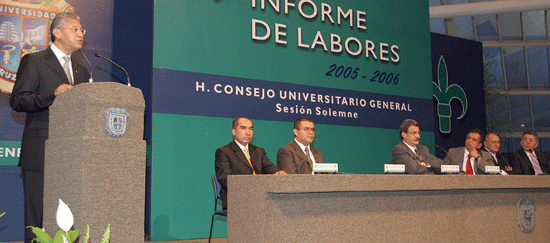 Luego de reconocer que los estudiantes anhelan y demandan cambios concretos que mejoren su formación profesional, el rector de la Universidad Veracruzana (UV), Raúl Arias Lovillo, se comprometió a poner todo su esfuerzo para apoyar a "la razón de ser de la Universidad" quienes serán en el futuro los que construyan un Veracruz más moderno y progresista. En su primer informe de labores, Arias Lovillo aseguró que la tarea institucional y social más trascendente es lograr que los estudiantes egresen de las aulas universitarias con un vasto acervo de conocimiento y de habilidades que los hagan profesionales modernos, competitivos, con capacidad de resolver problemas y de adaptarse a un entorno cambiante y lleno de desafíos. Destacó especialmente la determinación de la UV por formar estudiantes que lean y se conviertan en agentes del desarrollo cultural de la sociedad, para lo cual la institución ha puesto en marcha el proyecto de editar 52 autores clásicos de la literatura y pensamiento universal a un precio accesible para todos. "La Biblioteca del Universitario, dirigida por nuestro Doctor Honoris Causa y Premio Cervantes, Sergio Pitol, busca apoyar una formación calificada, profunda y humanística de nuestros estudiantes", comentó. Por otra parte, aceptó que aunque los universitarios saben que hay rumbo y proyecto en su institución, quieren que cambien las actitudes de los profesores, de los investigadores y de los funcionarios; que los espacios donde estudien sean mejores; cursar programas de calidad, con profesores cumplidos. "Quieren académicos que no estén ideando la manera de fugarse de la docencia para refugiarse en la investigación; demandan servicios más rápidos y efectivos, funcionarios que dominen su carácter hostil, desistan de sus ausencias y atiendan los planteamientos de la comunidad estudiantil". En el acto, también informó que en el ciclo 2005-2006 más de 30 mil estudiantes fueron beneficiados en el último ciclo con becas escolares, dijo que quienes lleguen a las aulas de la UV deben encontrar mucho más de lo que conocieron en el pasado: los profesores principalmente, pero también los laboratorios, las aulas, las bibliotecas y los espacios deportivos deben motivar su asombro y despertar su avidez de conocimiento. Aseguró que esta administración busca que los estudiantes encuentren en las aulas "los pensamientos y los pensadores que les ofrezcan todos los mundos posibles y pensables", pues señaló que no es intensión ni propósito de la UV modular el pensamiento ni la conducta de los alumnos. "Los queremos libres, libres de prejuicios y dogmas, conscientes de su papel y convencidos de que vienen aquí a compartir con nosotros una experiencia transformadora en una atmósfera de libertad, de aprendizaje, de gozo estético y respeto moral". Añadió que la UV tiene que ser un lugar donde los universitarios se preparen técnica, intelectual y éticamente, para que sean ciudadanos comprometidos con la democracia: "Nada sería más empobrecedor y antidemocrático que la pretensión de imponer un pensamiento uniforme. En cambio la diversidad es fuente de riqueza cultural y humana". Subrayó que en la Universidad deben afianzarse y fructificar semillas de tolerancia sembradas desde los primeros peldaños del sistema educativo: "Debemos enseñar las ventajas que tiene la solución pacífica de los conflictos, mostrando a los estudiantes la importancia del diálogo y la negociación".