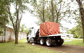 en uno, una plancha transportaba, cubierta y muy bien amarrada, un