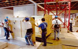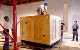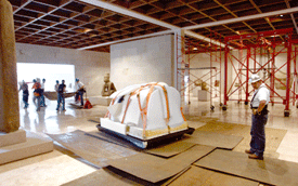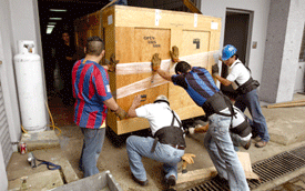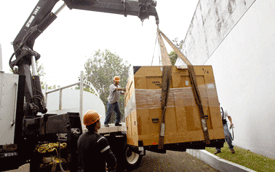 en su sitio, tras sacarla del enorme contenedor en el que regresó