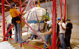 de grúas y poleas comenzar a levantarla, poco a poco y con