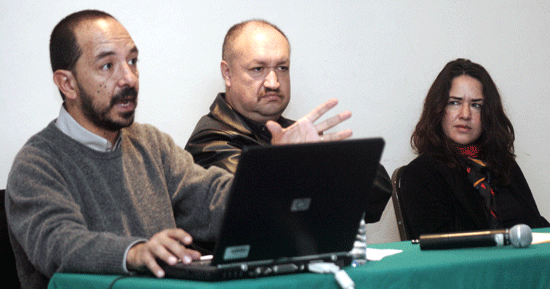 Ángel Casillas, Adalberto Tejeda y Giovanna Mazzotti, durante