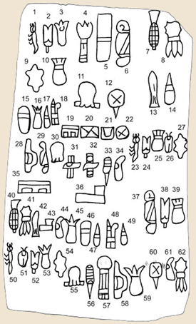 bloque contiene 62 iconos dispuestos en seis hileras, éstos