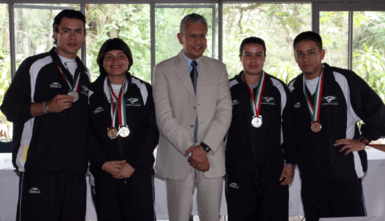 (plata en tae kwon do); Rafael Zavaleta ( bronce en judo) y los
