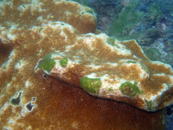 sobre los restos de coral, lo que origina que ambas compitan por el