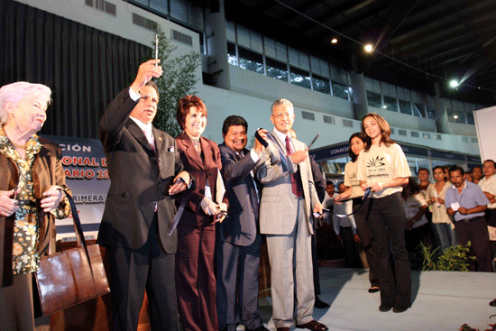Fidel Herrera, Celia del Palacio y Raúl Arias Lovillo cortaron