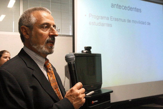 Durante la conferencia “Una revisión al Tratado de Bolonia”,