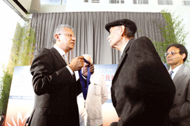 la ceremonia en que John B. Thompson, Felipe Garrido y Carlo Antonio