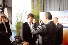 Luego de imponer la Medalla al Mérito Universidad Veracruzana