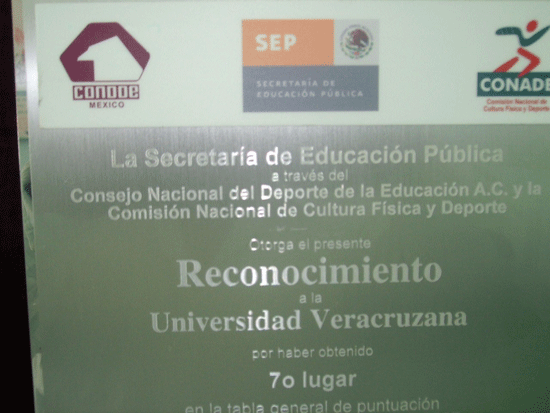 es la placa que avala a Halcones UV, como séptimo lugar en