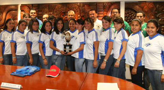 A nombre del equipo femenil entregaron el trofeo al rector las jugadoras
