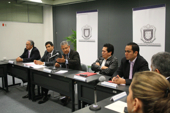 el rector de la UV, Raúl Arias Lovillo, en la reunión