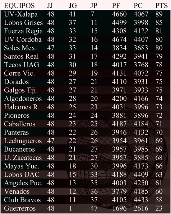 (LNBP), en la que el equipo número uno fue Halcones de la Universidad