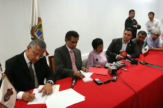 el Arias Lovillo durante la firma del acuerdo de finalización