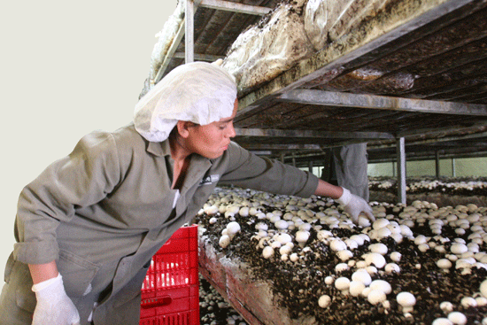 los habitantes de las comunidades en la producción del champiñón.