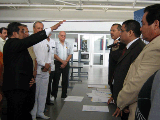la toma de protesta por Agustín Aguirre Pitalúa, director