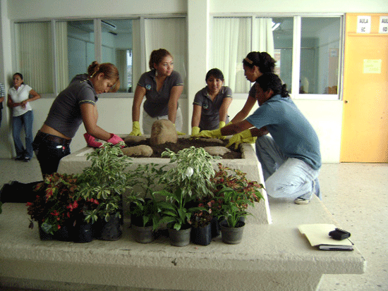 de las jardineras que se ubican en el interior del edificio; asimismo,