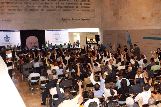 Frente al pleno del Consejo, reunido en el Museo de Antropología
