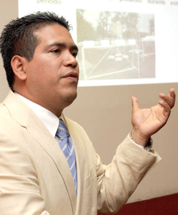 Frente a estudiantes de Ingeniería Civil, el académico,
