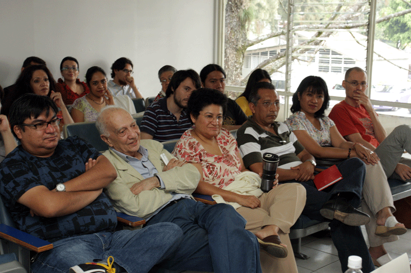 Los autores, frente al escritor, leyeron fragmentos de sus