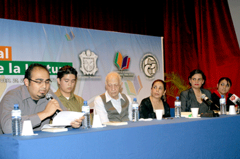 Sergio Pitol y estudiantes, en el Festival de la Lectura