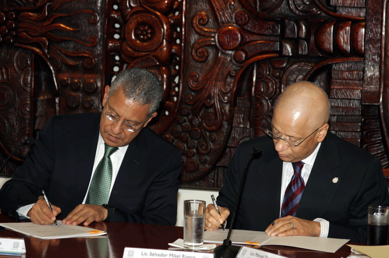 y el procurador Salvador Mikel Rivera para firmar el convenio