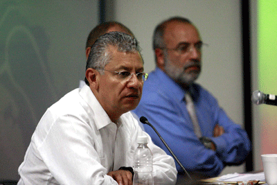 El rector de la UV, el economista José Rangel y el