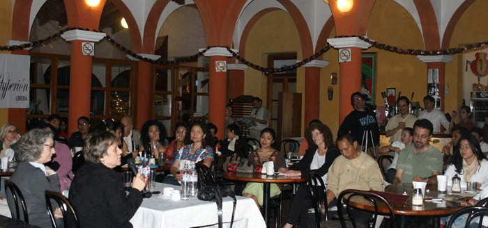 un lleno total en el café en el que se realizó