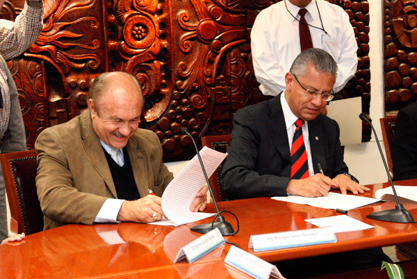 En una breve ceremonia, el rector de la Universidad, Raúl Arias Lovillo, y el secretario general del FESAPAUV, Enrique Levet Gorozpe, firmaron en presencia del titular de la Secretaría del Trabajo, Previsión Social y Productividad, Ulises Ruiz Lopart, el convenio que puso feliz término a las negociaciones entre ambas partes.