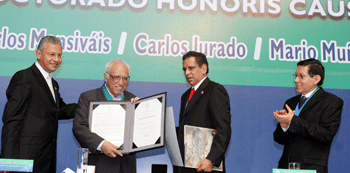 En noviembre de 2007, Monsiváis regresó a la UV, esta vez para recibir él mismo el Doctorado Honoris Causa, junto con Carlos Jurado y Mario Muñoz. En su intervención, el intelectual hizo una férrea defensa de la universidad pública: