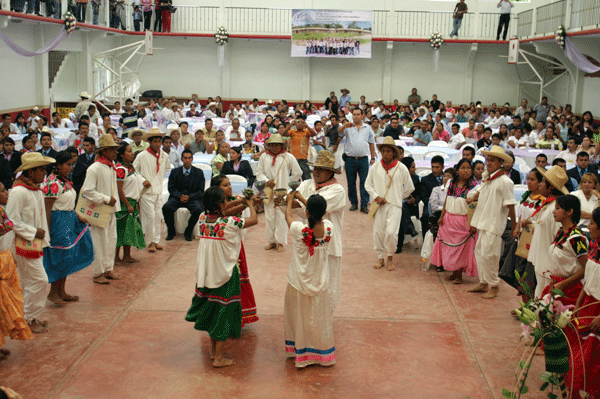 Aspecto de la danza Xochipitzáhuatl, representada en ocasión del egreso de los jóvenes gestores interculturales