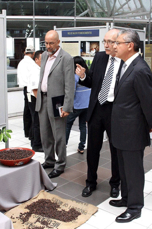 El rector Raúl Arias Lovillo y el coordinador de Diprocafé, Mario Fernández, inauguraron la exposición de productos |