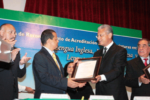 El Rector de la UV entregó la acreditación al director de Idiomas, Óscar Narváez |
