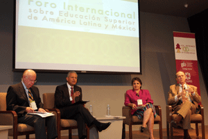 José Narro Robles, Raúl Arias Lovillo, Yoloxóchitl Bustamante Díez y Miguel Ángel Navarro en el Foro Internacional sobre la Educación Superior de América Latina y México |
