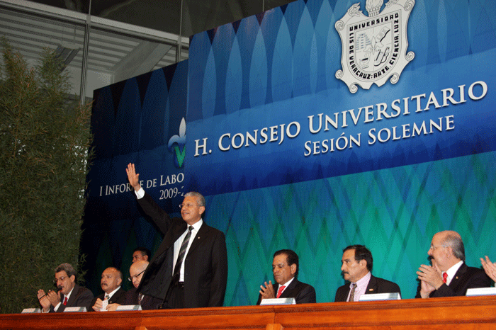 En su primer informe de labores para el periodo 2009-2013, el rector de la Universidad Veracruzana (UV), Raúl Arias Lovillo, urgió una reforma a la Ley Orgánica de esta casa de estudios y, para tal efecto, una autonomía plena que le permita a la institución legislarse por sí misma, y el gobernador del estado, Fidel Herrera Beltrán, respaldó la propuesta.