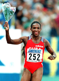 Luego de sufrir un accidente doméstico en 1993, la prensa especializada daba por terminada su carrera, pero la atleta conocida como “La tormenta del Caribe” se presentó en el Campeonato Mundial de Atletismo en 1995 en Gotemburgo, Suecia, y se llevó la medalla de oro. Repitió la proeza dos años más tarde en Grecia, y en los Juegos Olímpicos de Atlanta 1996 ganó una medalla de plata. |