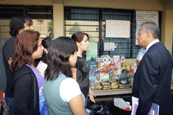 Al recorrer las instalaciones de la Facultad de Biología, el Rector platicó con estudiantes sobre el acopio que reunieron destinado para personas y mascotas de diversas entidades del estado. Arias Lovillo celebró la iniciativa de los alumnos que se unen a los demás sectores de la UV que están ayudando a los veracruzanos que sufren las consecuencias ambientales del cambio climático. |