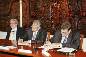El convenio fue signado por los rectores de la UV, Raúl Arias Lovillo, y de la UH, Gustavo Cobreiro Suárez, quien exaltó la relación estrecha y humana que existe entre Veracruz y Cuba y el enorme beneficio que este evento les significa, dado que también involucrará el fortalecimiento de las Cátedras José Martí de la UV y Benito Juárez de la UH.