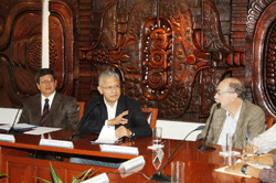 Los alcaldes asistentes a la reunión realizada en Rectoría fueron: Petronila Jerónimo García, de Filomeno Mata; Miguel González Antonio, de Mecatlán; Cándido Juárez Grande, de Zozocolco; Florencio Sosa Candanedo, de Coyutla (representado por Gerardo Bonilla); Rutilio Espinosa Pérez, de Chumatlán, y Salvador Lammoglia Macip, de El Espinal. |