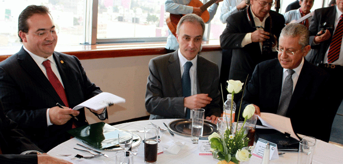 El gobernador de Veracruz, Javier Duarte; el subsecretario de Pymes, Miguel Marón Manzur, y el rector de la UV,