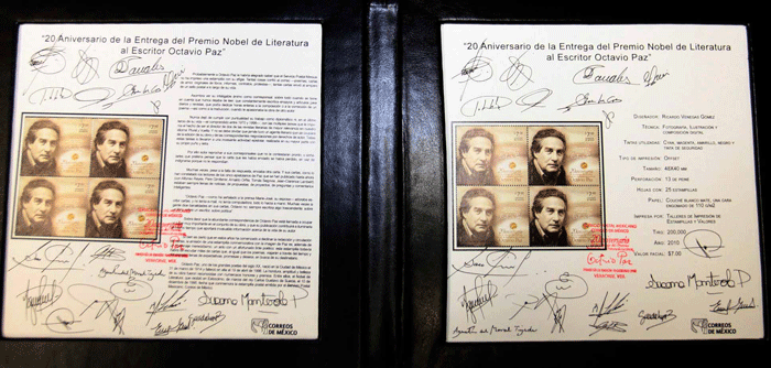 La estampilla postal conmemora el vigésimo aniversario de la entrega del Premio Nobel de Literatura al poeta Octavio Paz |