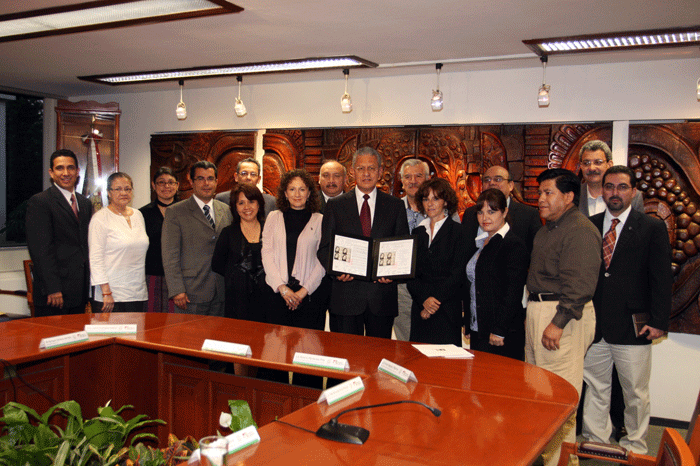 Los Secretarios de la Rectoría y de Administración y Finanzas, al igual que varios funcionarios universitarios, signaron la hoja filatélica que alude al lanzamiento del timbre postal.